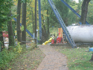 It was a scary time, last Thursday. The previous two days we watched a huge storm come up the east coast of the U.S. We watched the radar, and weather carefully and thought that the main rain fall was passing safely to the west of us.... Well that part was correct, but unfortunately the rain was falling in the watershed area of Catskill Creek (where we're secured to the docks at Hop-O-Nose Marina).